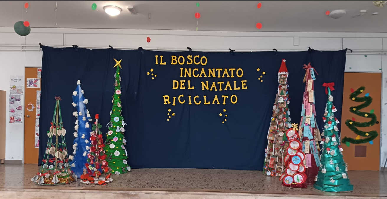 Sotto l'attenta guida delle maestre e il supporto costante dei collaboratori scolastici, gli alunni hanno dato vita a un vero e proprio bosco magico, impiegando esclusivamente materiali e oggetti d'uso comune che, destinati alla spazzatura, hanno ripreso vita, diventando addobbi scintillanti di ogni tipo: