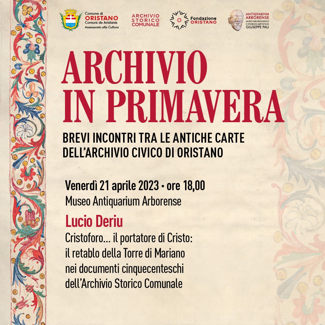 Primavera in Archivio - Venerdì 21 aprile, ore 18, presso l'Antiquarium Arborense