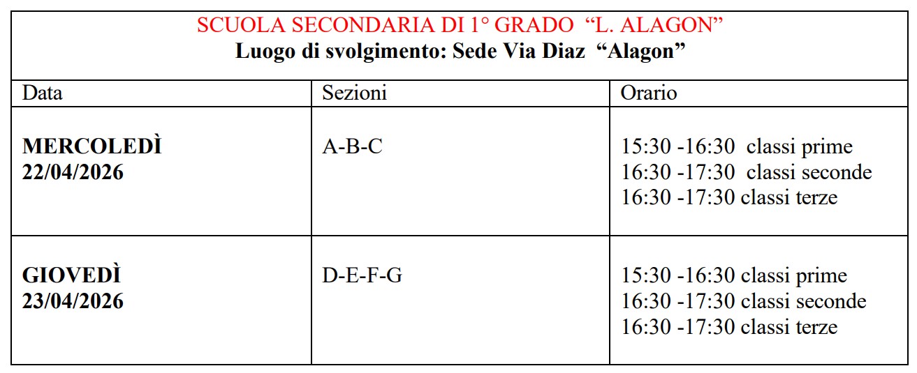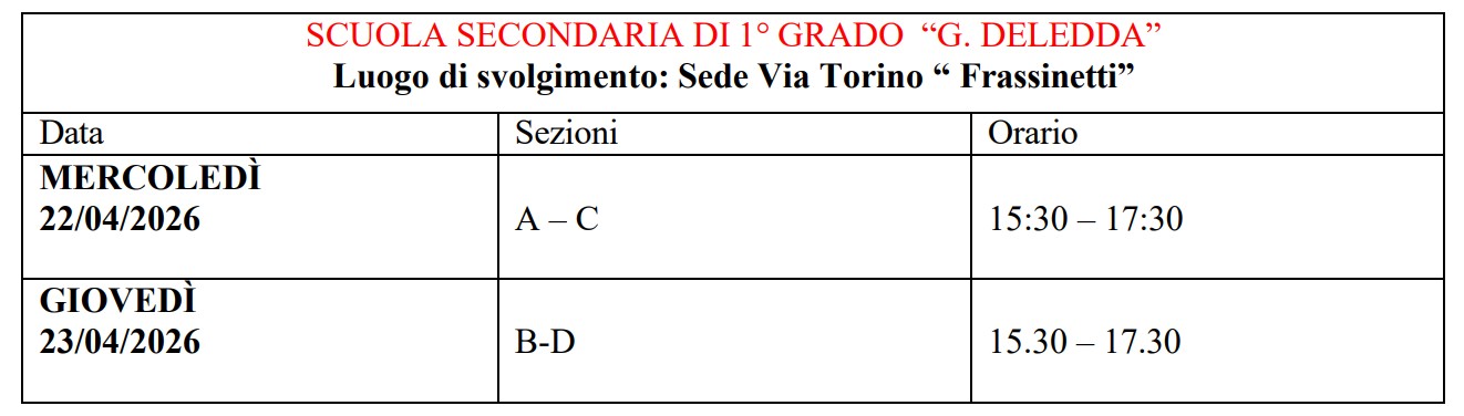 COLLOQUI GENERALI- INCONTRO SCUOLA – FAMIGLIA APRILE 2026