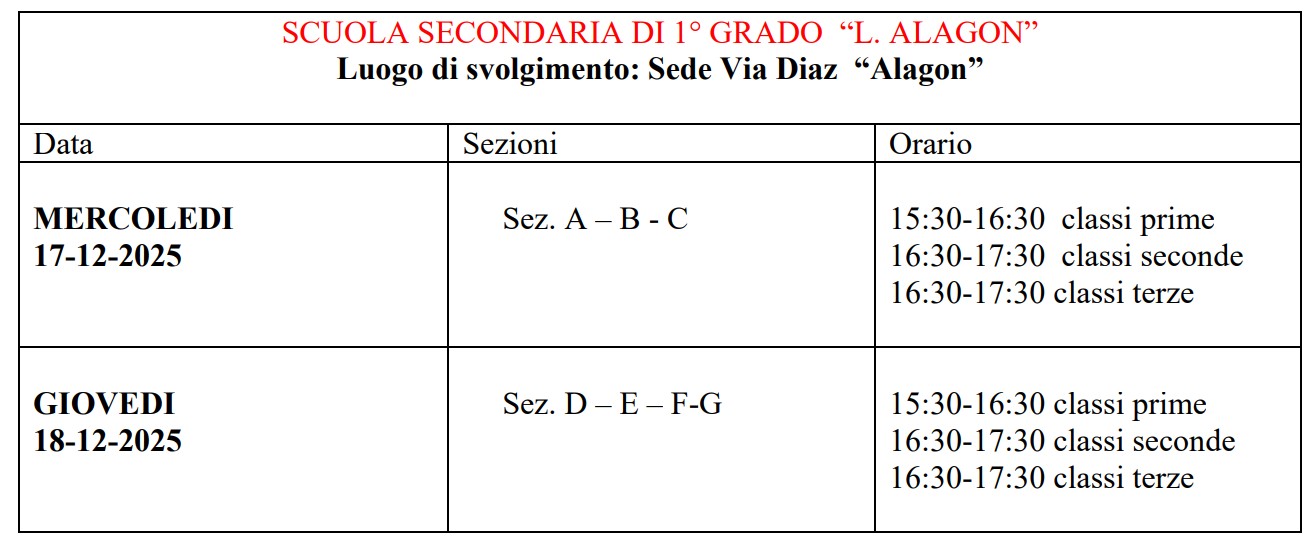 Si comunica alle famiglie che i colloqui generali - incontro scuola famiglia -dicembre 2025 si terranno secondo il calendario seguente: