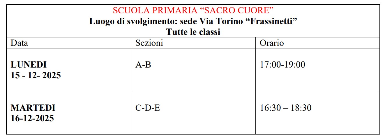 COLLOQUI GENERALI - INCONTRO SCUOLA - FAMIGLIA DICEMBRE 2025